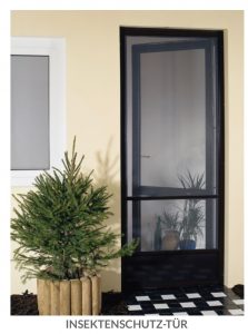 Die von uns verwendeten Insektenschutz.Türen sind aus besonderen Tür-Aluprofilen mit PVC-Ecken und einem grauen Glasfasernetz. Die Insektenschutz-Tür ist mit einem handlichen PVC-Griff und mit Querbalken in der Mitte verstärkt.